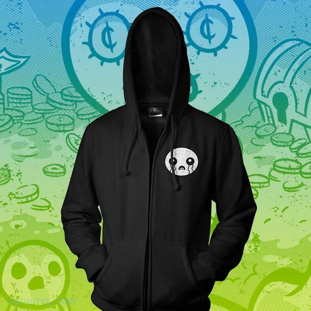 For the first time ever, snuggle up with Isaac and keep warm for the cold months in this official Binding of Isaac zip-up hoodie!