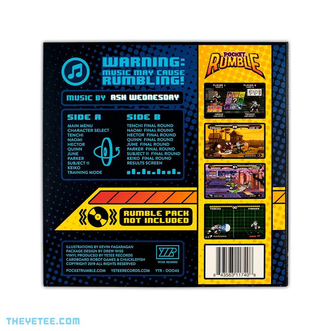 The album artwork features expressive illustrations by Kevin Fagaragan and a design by Drew Wise that harkens to the classic Neo Geo packaging the game draws it’s inspiration from. Pressed on 140G translucent sky blue vinyl, this exclusive Yetee Records 12″ vinyl is sure to be a gem in your collection.