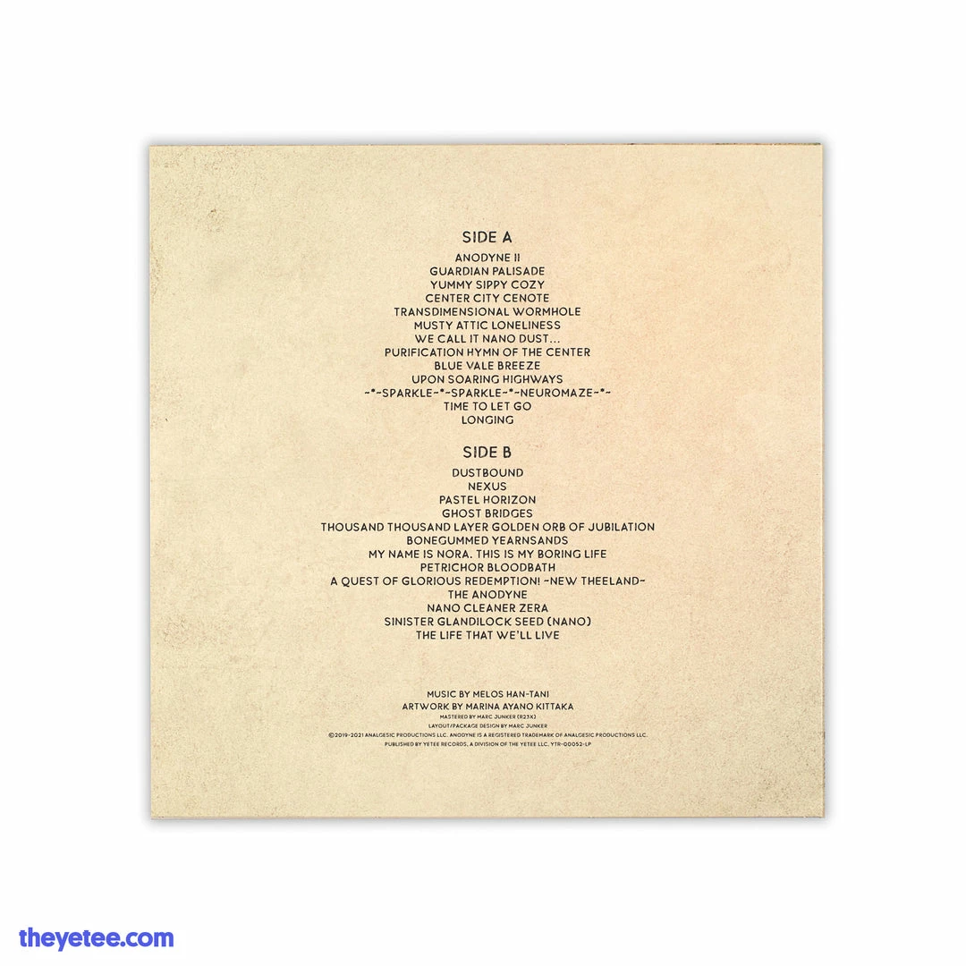 Housed inside a high-quality jacket featuring artwork from the game’s very own Marina Ayano Kittaka, this vinyl soundtrack is limited to 300 copies! Mastered by Marc Junker (aka R23X), this single LP features 26 hand-selected tracks and liner notes from composer and game developer Melos Han-Tani.